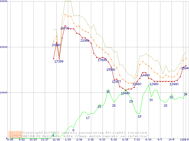 メモリ主要製品の最安値推移