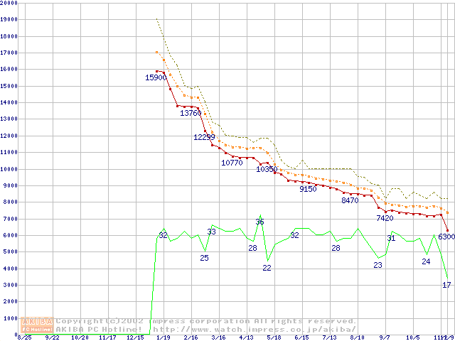 Celeron 1.30GHz FC-PGA2 リテールパッケージの価格推移