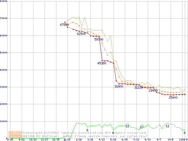 Socket 603 (micro-PGA,L2 512KB,Hyper-Threading,Prestonia)の最安値推移