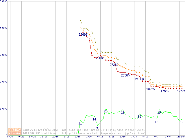 Athlon MP 1900+ (1.6GHz) リテールパッケージの価格推移