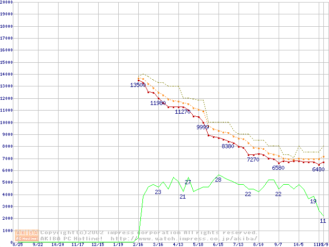 Socket A (PGA,FSB 200MHz,L2 64KB,Morgan)の最安値推移