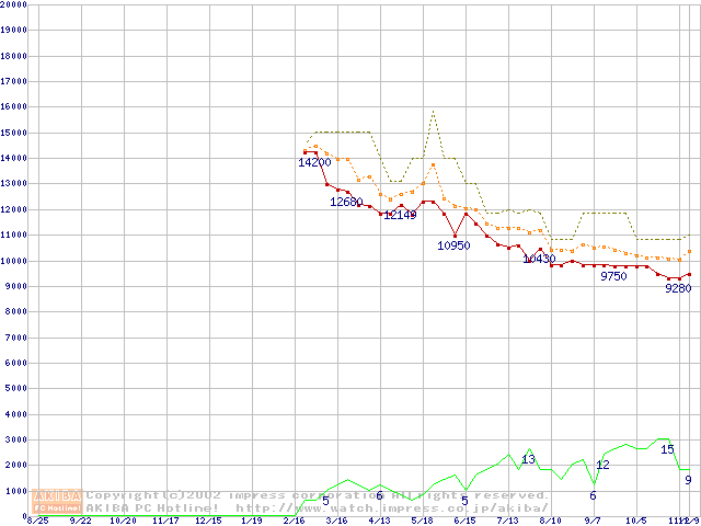 MHRシリーズ (9.5mm,4200rpm,UltraATA/100,2MB,FDB,20GB/Platter)の最安値推移