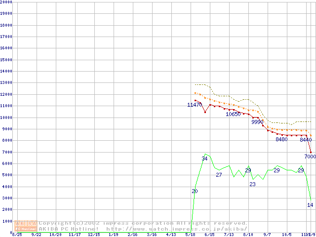 Celeron 1.40GHz FC-PGA2 リテールパッケージの価格推移