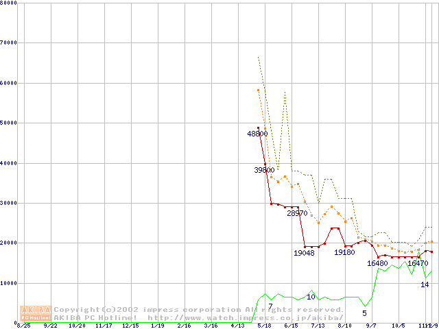 メモリ主要製品の最安値推移