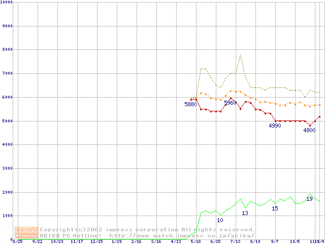 メモリ主要製品(最安値5千円~1万円未満)の最安値推移