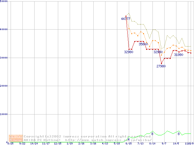 PC800-40 DRDRAM RIMM ECC対応の最安値推移