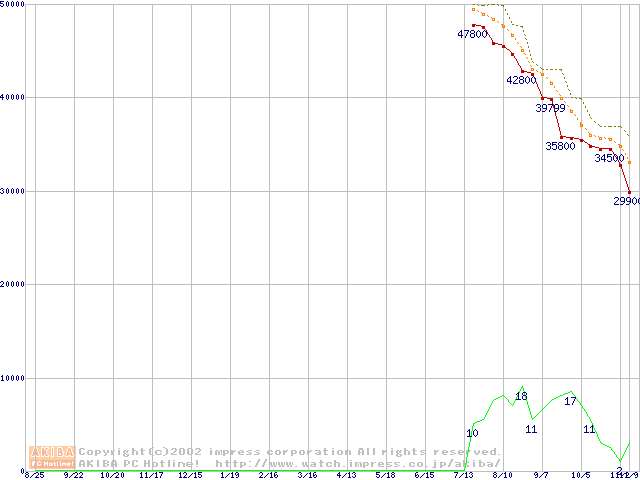 MKシリーズ (9.5mm,4200rpm,2MB,FDB,30GB/Platter)の最安値推移