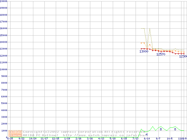 DK23DAシリーズ (9.5mm,4200rpm,FDB,20GB/Platter)の最安値推移