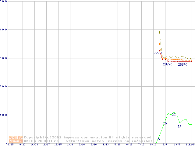 Socket 478 (micro-PGA,FSB 400MHz,L2 512KB,Northwood)の最安値推移