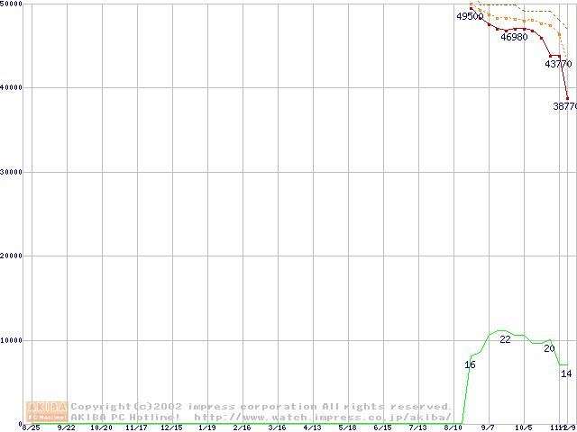 Socket 478 (micro-PGA,FSB 400MHz,L2 512KB,Northwood)の最安値推移