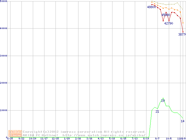 Socket 478 (micro-PGA,FSB 533MHz,L2 512KB,Northwood)の最安値推移