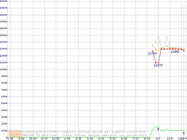 Socket A (OPGA,FSB 200MHz,L2 256KB)の最安値推移