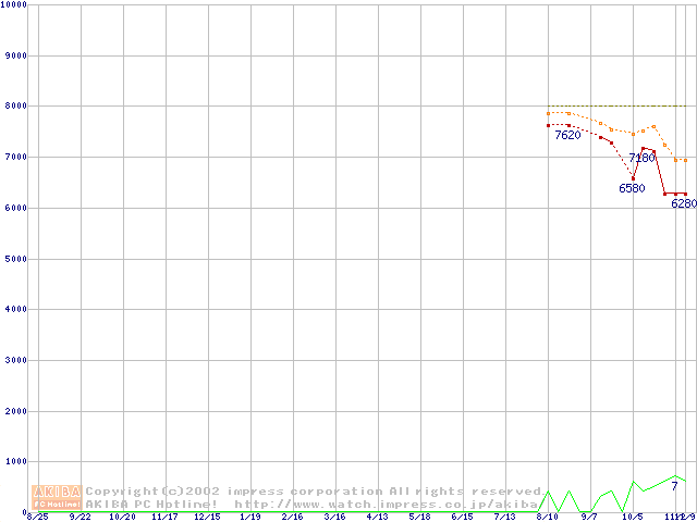 Socket 370 (FC-PGA,FSB 100MHz,L2 128KB,Coppermine)の最安値推移