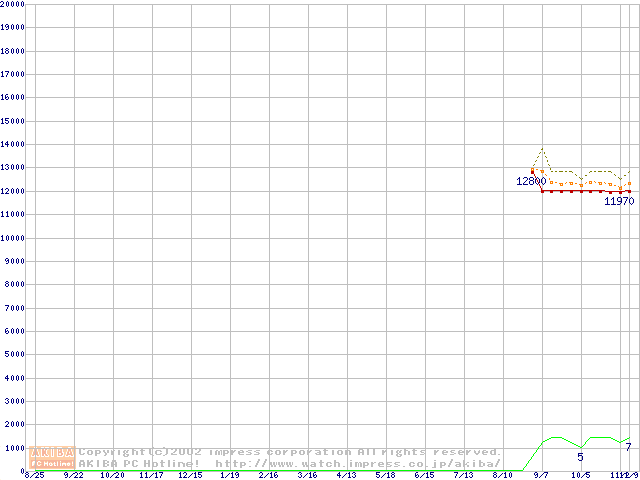 Socket A (OPGA,FSB 200MHz,L2 256KB)の最安値推移