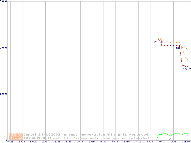 Socket A (OPGA,FSB 200MHz,L2 256KB)の最安値推移