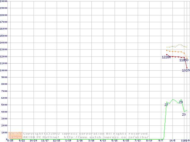 Socket 478 (micro-PGA,FSB 400MHz,L2 128KB,Northwood)の最安値推移