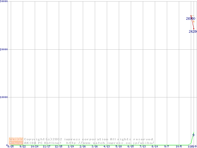 Socket A (OPGA,FSB 266MHz,L2 256KB,Thoroughbred)の最安値推移