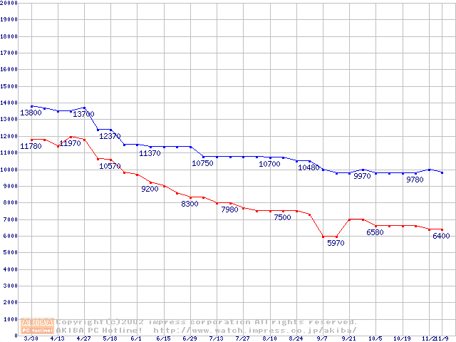 | [↓次グラフ]: | Socket A (PGA,FSB 200MHz,L2 256KB,Thunderbird)の最安値推移 |