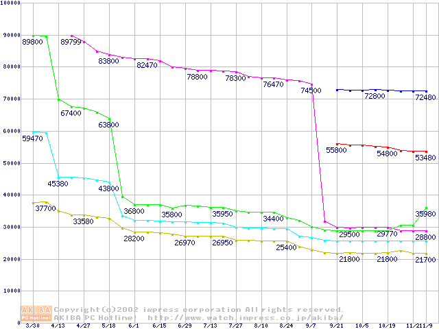 | [↑前グラフ]: | Socket 478 (micro-PGA,FSB 400MHz,L2 512KB,Northwood)の最安値推移 |