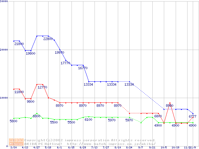 | [↓次グラフ]: | PC800-40 DRDRAM RIMMの最安値推移 |