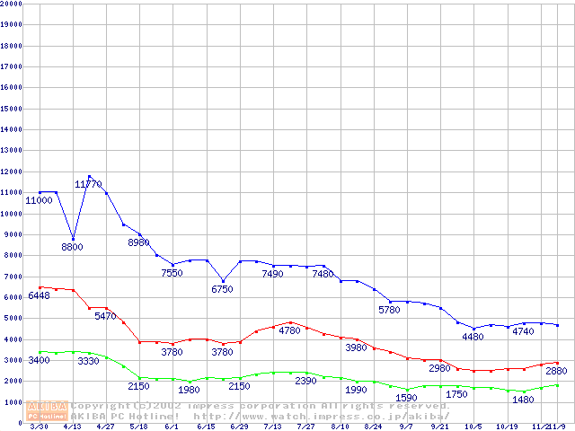 | [↓次グラフ]: | PC133 SDRAM DIMM CasLatency=2の最安値推移 |