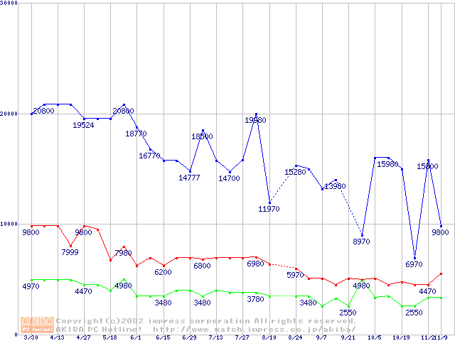| [↑前グラフ]: | PC133 SDRAM DIMM CasLatency=2の最安値推移 |