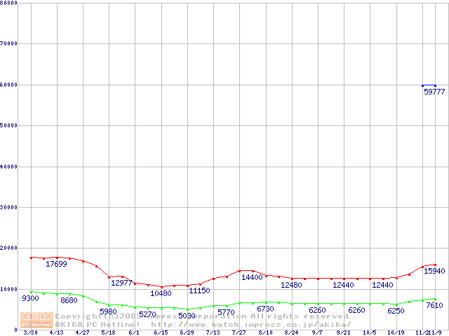 | [↓次グラフ]: | PC3200(DDR400) DDR SDRAM DIMMの最安値推移 |