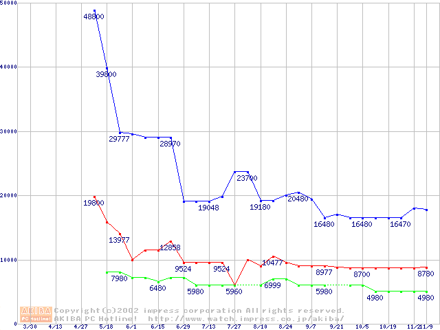 | [↓次グラフ]: | PC3500(DDR433) DDR SDRAM DIMMの最安値推移 |