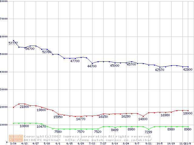 | [↑前グラフ]: | PC3500(DDR433) DDR SDRAM DIMMの最安値推移 |