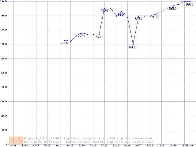 | [↓次グラフ]: | PC133 SDRAM DIMM CasLatency=3の最安値推移 |