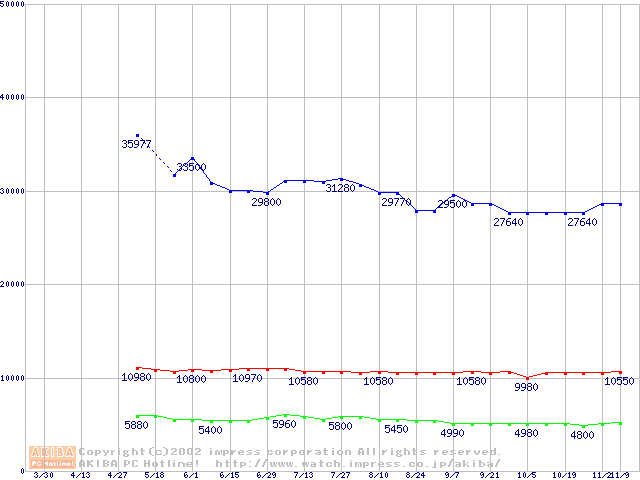 | [↓次グラフ]: | PC800-45 DRDRAM RIMMの最安値推移 |