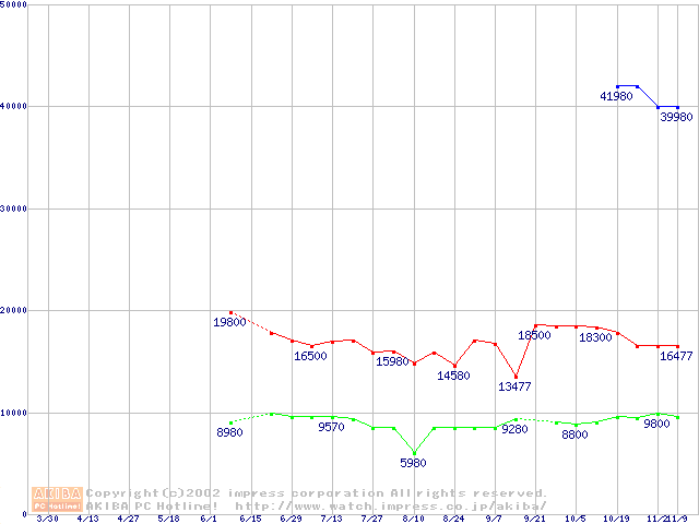 | [↑前グラフ]: | PC800-45 DRDRAM RIMMの最安値推移 |