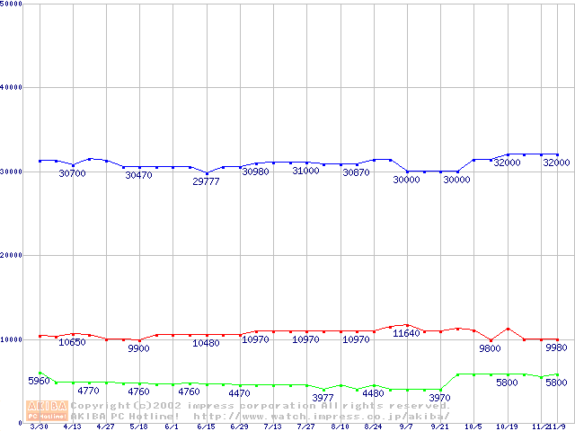 | [↑前グラフ]: | PC800-40 DRDRAM RIMM ECC対応の最安値推移 |