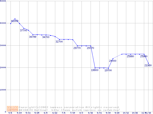 | [↑前グラフ]: | 2.5インチHDD 60GB~80GB未満(9.5mm厚)の最安値推移 |
