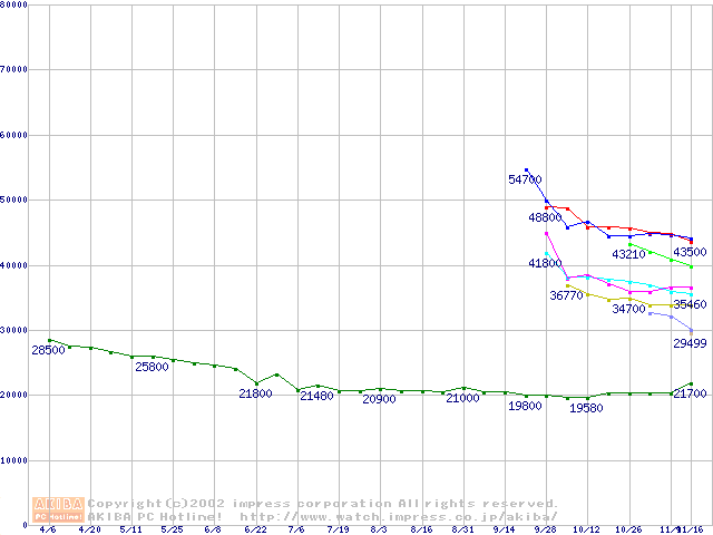 HDD主要製品(最安値1万5千円~2万円未満)の最安値推移