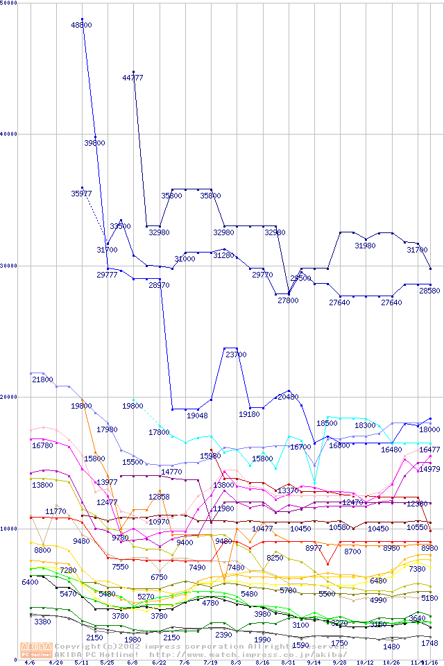 メモリ主要製品の最安値推移