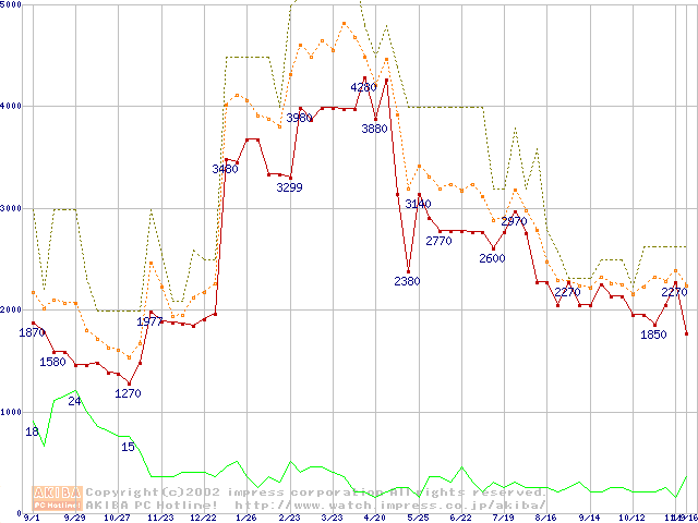 PC133 SDRAM DIMM CasLatency=2の最安値推移