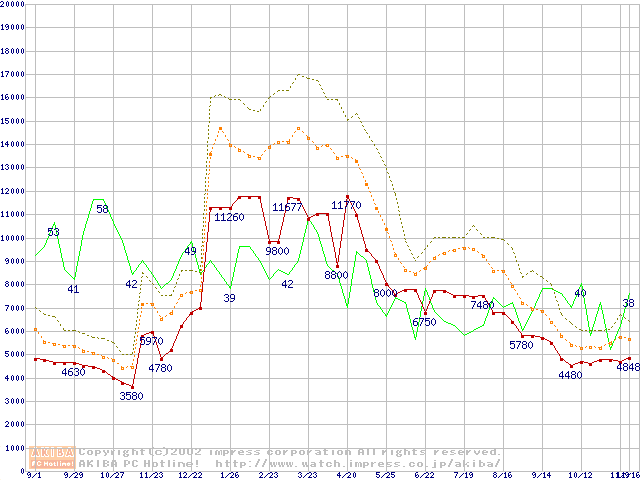 PC133 SDRAM DIMM CasLatency=3の最安値推移