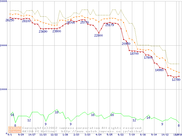 Pentium III 1GHz SECC2 リテールパッケージの価格推移