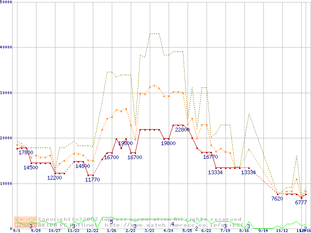 PC100 SDRAM DIMM CasLatency=2 ECC対応 Registeredタイプの最安値推移