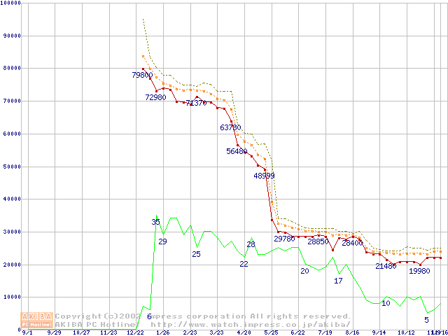 Pentium 4 2.20GHz リテールパッケージの価格推移