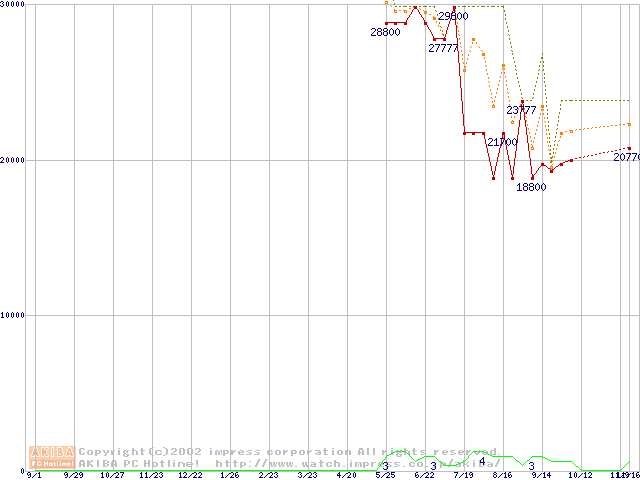 PC2700(DDR333) DDR SDRAM DIMM ECC対応 Registeredタイプの最安値推移