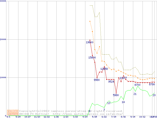 PC3200(DDR400) DDR SDRAM DIMMの最安値推移