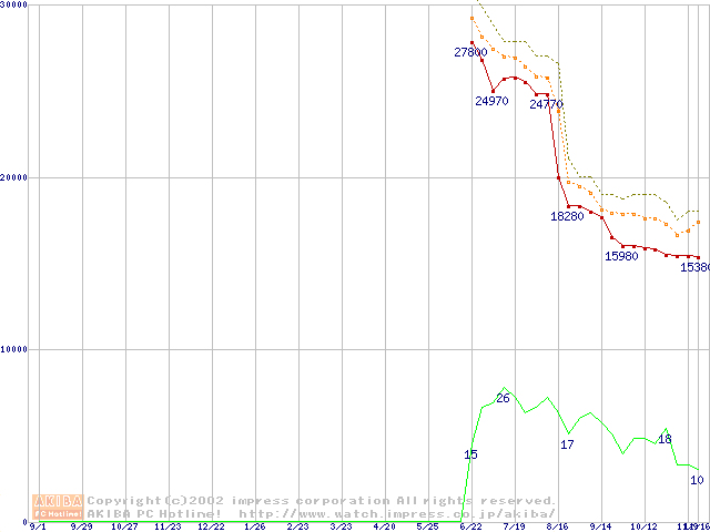 Socket A (OPGA,FSB 266MHz,L2 256KB,Thoroughbred)の最安値推移