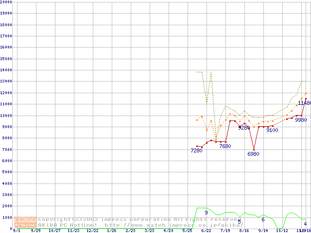PC2100(DDR266) DDR SDRAM DIMM(CL 2.0) ECC対応 Registeredタイプの最安値推移