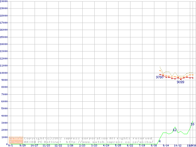 DiamondMax 16 (5400rpm,UltraATA/133,2MB,80GB/Platter,ボールベアリング)の最安値推移