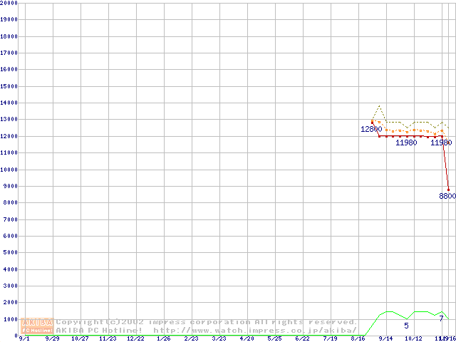 Socket A (OPGA,FSB 200MHz,L2 256KB)の最安値推移