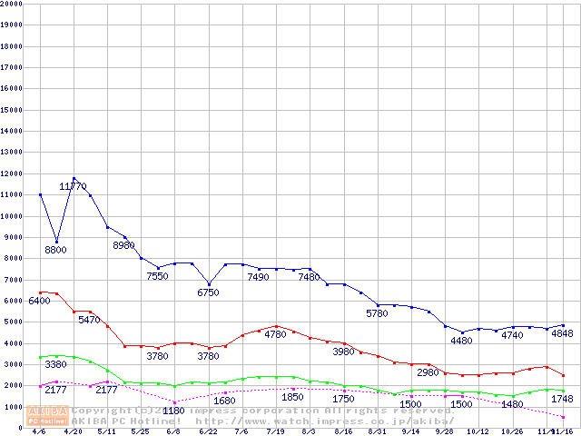 | [↓次グラフ]: | PC133 SDRAM DIMM CasLatency=2の最安値推移 |