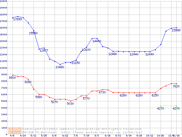 | [↓次グラフ]: | PC3200(DDR400) DDR SDRAM DIMMの最安値推移 |