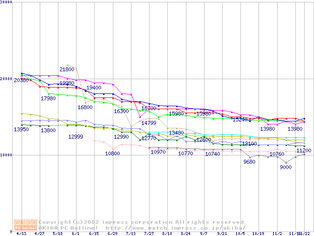 | [↓次グラフ]: | 2.5インチHDD主要製品(最安値1万5千円~2万円未満)の最安値推移 |